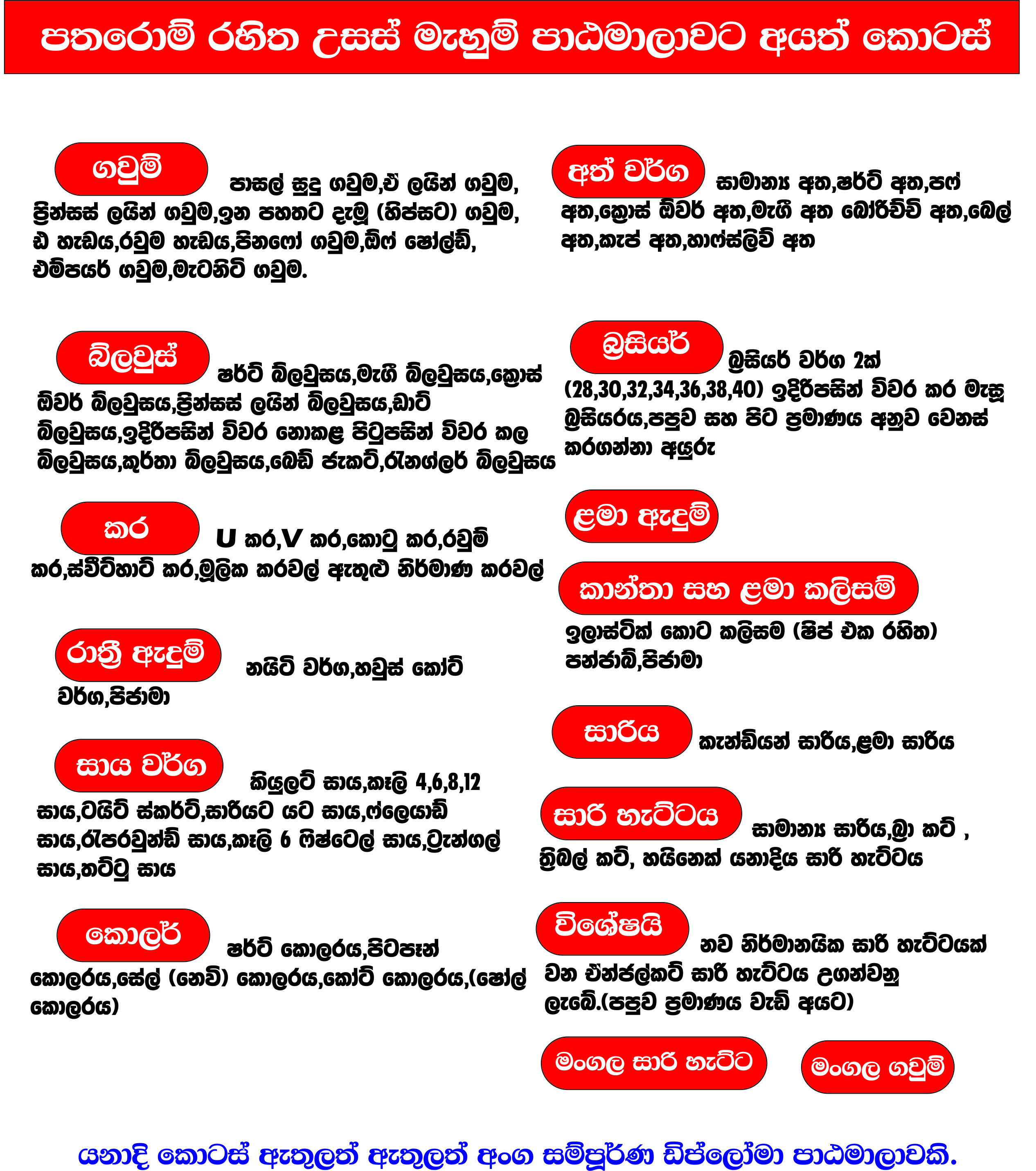 - ඇදුම් මැසිම පිලිබදව කිසිම දැනුමක් අවශ්ය නොවේ.