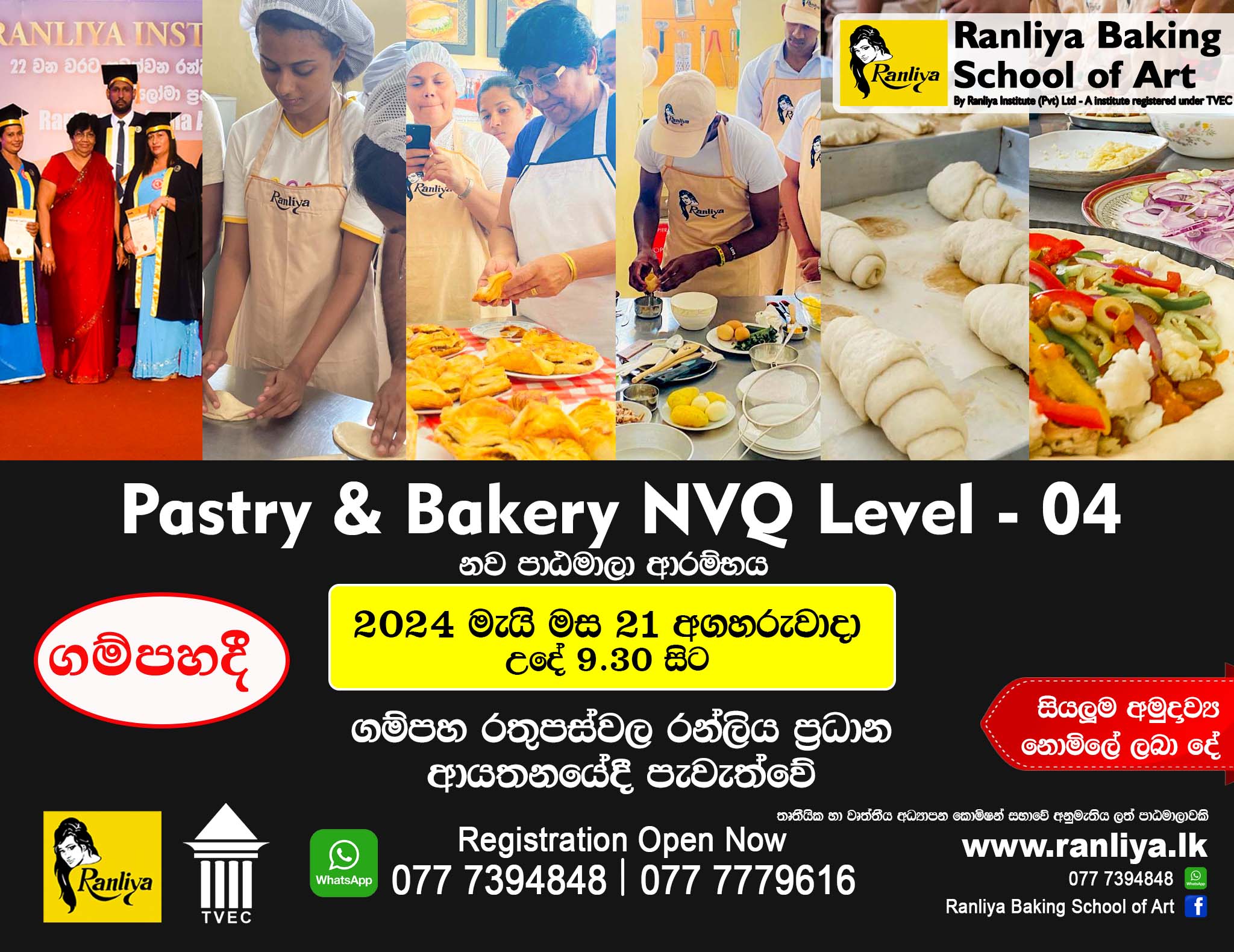 - NVQ LEVEL 4(Baker) සහතිකය ලබා ගත් පසු වැඩිදුර අධ්යාපනය, උපාධිය දක්වා ඉගෙන ගත හැක.